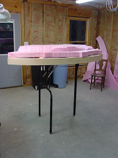 First I mark where the foam isn't so that I don't put glue where it is not needed. The handy kerosene heater in the back knocks the chill off pretty well when the ice starts to fall.